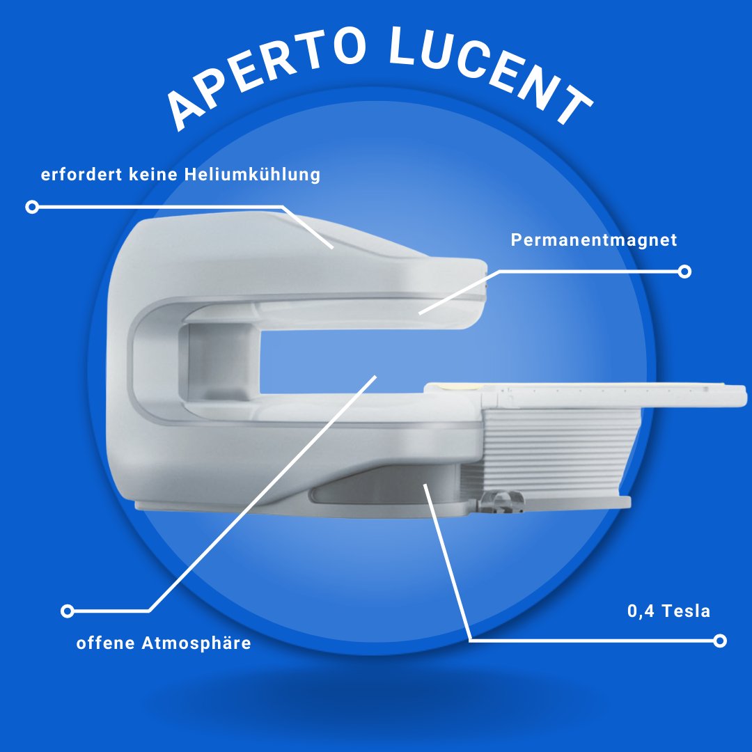 Als jahrelanger Vorreiter und Verfechter von energiesparender Radiologie zeigte Professor Dr. Hans-Martin Klein mit seiner Praxis Greenscan Imaging, dass man Niederfeld-MRTs mit Permanentmagnet mit einer Anlage für regenerative Energiegewinnung und -speicherung betreiben kann. Auch hier kommt ein Aperto Lucent Plus zum Einsatz.