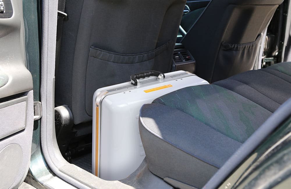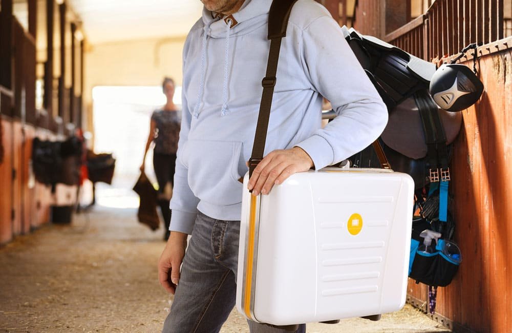 Das Leonardo DR mini II System ist ein leichter Röntgenkoffer für Tierarztpraxen und/oder Pferde- und Gemischtkliniken. Der Koffer wiegt nur 8,9 kg und gehört damit zu den leichtesten Röntgenkoffern auf dem Markt. Er ist akkubetrieben und kabellos, sodass er für den stationären und ambulanten Einsatz indoor sowie outdoor geeignet ist. Der Akku verspricht ein durchgehendes Arbeiten von ca. 4 Stunden, bevor er wiederaufgeladen werden muss.