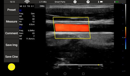 | Linearsonde (L11-4Ks) | 7,5 MHz | 6-11 MHz | L40 | Gefäße, Small Parts, Anästhesie, Orthopädie |